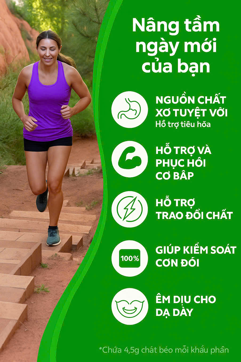 • 21g protein thực vật giúp tăng cơ, giảm mỡ, phục hồi sau tập luyện.